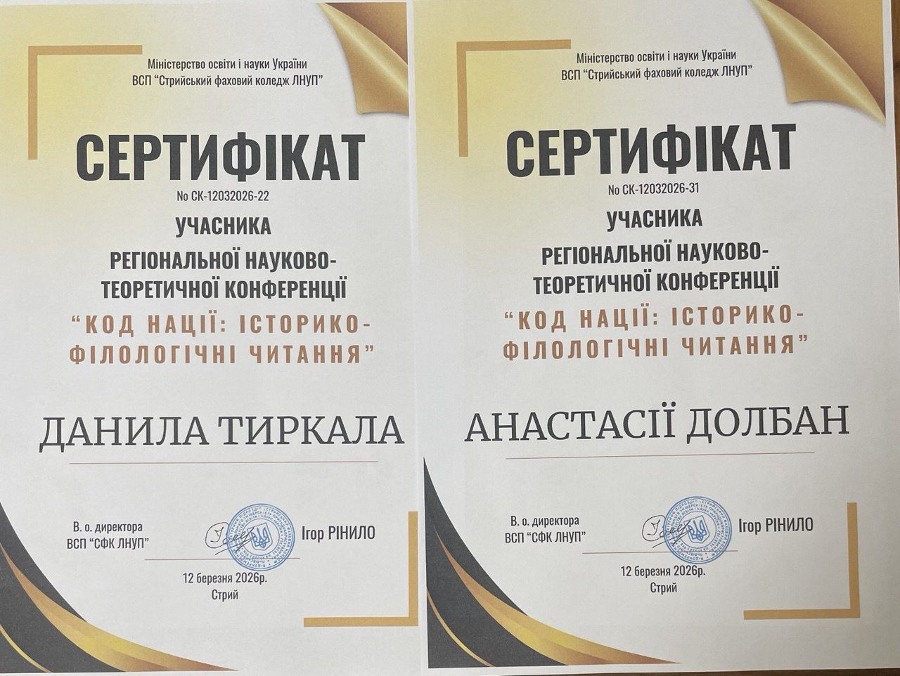 Здобувачі освіти спеціальності 081 «Право» ВСП «Вишнянський фаховий коледж» взяли участь у регіональній науково-теоретичній конференції «Код нації: історико-філологічні читання», що відбулася на базі ВСП «Стрийський фаховий коледж ЛНУП».