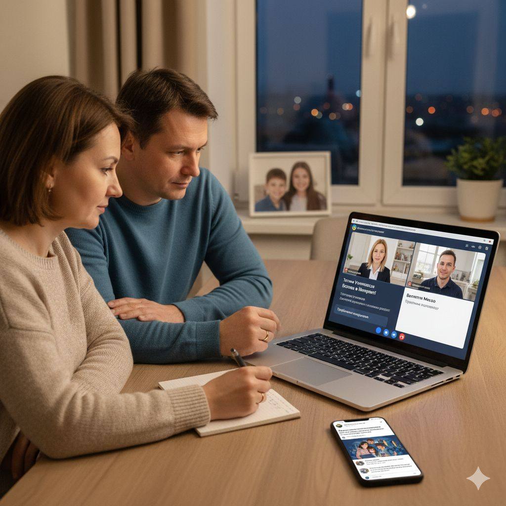 Учора було проведено онлайн-зустріч із батьками здобувачів освіти, кураторами груп на тему «Безпека дітей у цифровому просторі та профілактика деструктивних впливів». Спікерами виступили заступник директора з виховної роботи Тетяна Устиновська та практичний психолог Валентина Мисько.